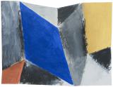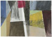Faltungen, zu Beginn spielerische Bleistiftzeichnungen, dann wird die Komposition mit Ölfarbe beendet.